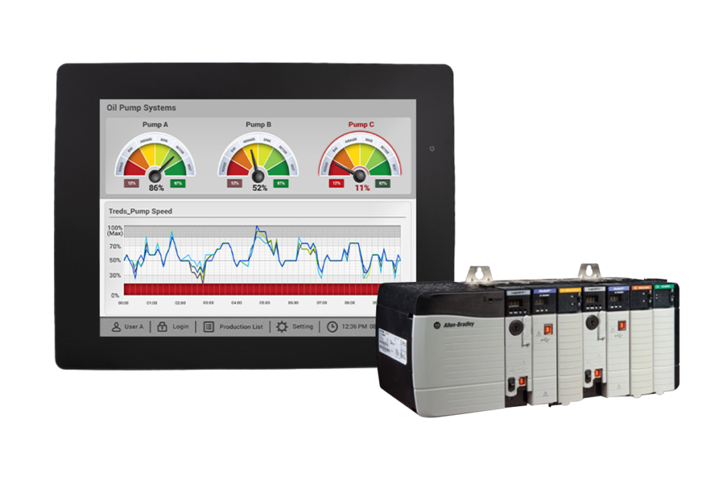 Integrate one of our HMIs with an Allen-Bradley PLC or controller with just a few click. Our HMIs support Allen-Bradley PLCs and we offer step-by step instructions on how to connect one of our HMIs to an Allen-Bradley PLC, complete with videos and connection guides.