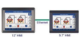 Example: An automotive manufacturer has several 4.3″ HMIs at various points along an assembly line monitoring sub-assembly processes. A 12″ HMI is at the end of the line and the customer wants to monitor the 4.3″ HMIs with the 12″ HMI.