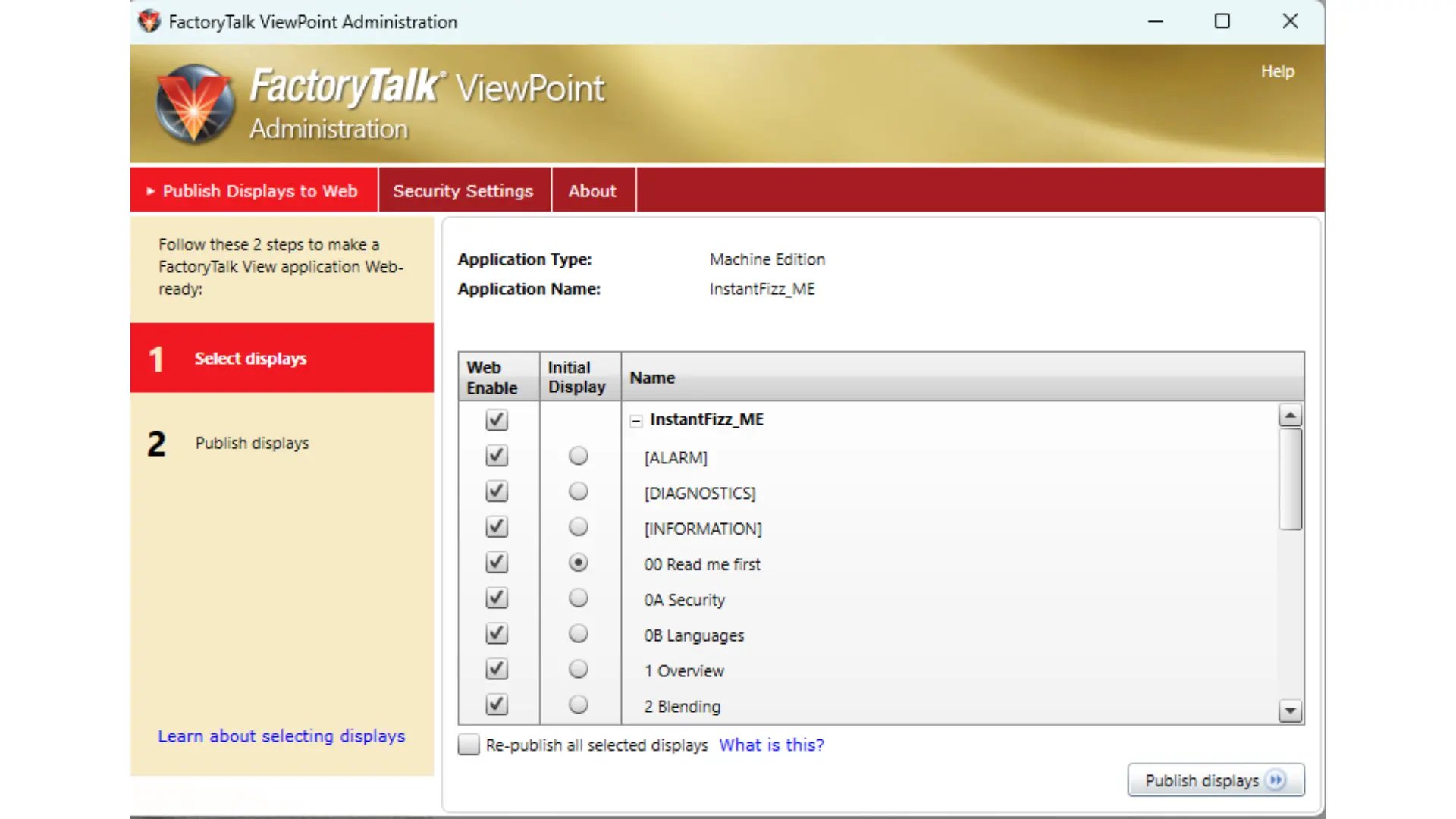 – Click Publish Displays