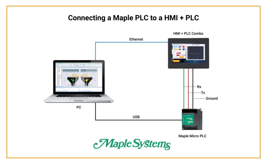 Imagine you’re in charge of an industrial production plant, where every machine on your assembly line is managed by a Modbus-compatible PLC. And you want all of these devices to connect to and be managed by a single overarching PLC, with some light logic in it, but also with a screen to display diagnostics, and offer HMI-like controls for this “master” PLC. A Maple Systems HMI + PLC combo unit (a.k.a. an “HMC”) would fit the bill perfectly. But how would you integrate a Maple Systems HMC with a Modbus PLC?