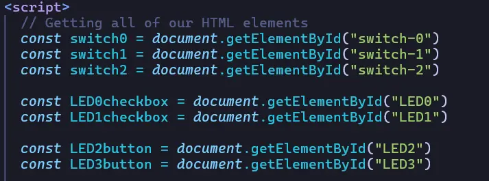 Now we move on to the JavaScript, we’ll start by gathering references to all of our display elements.