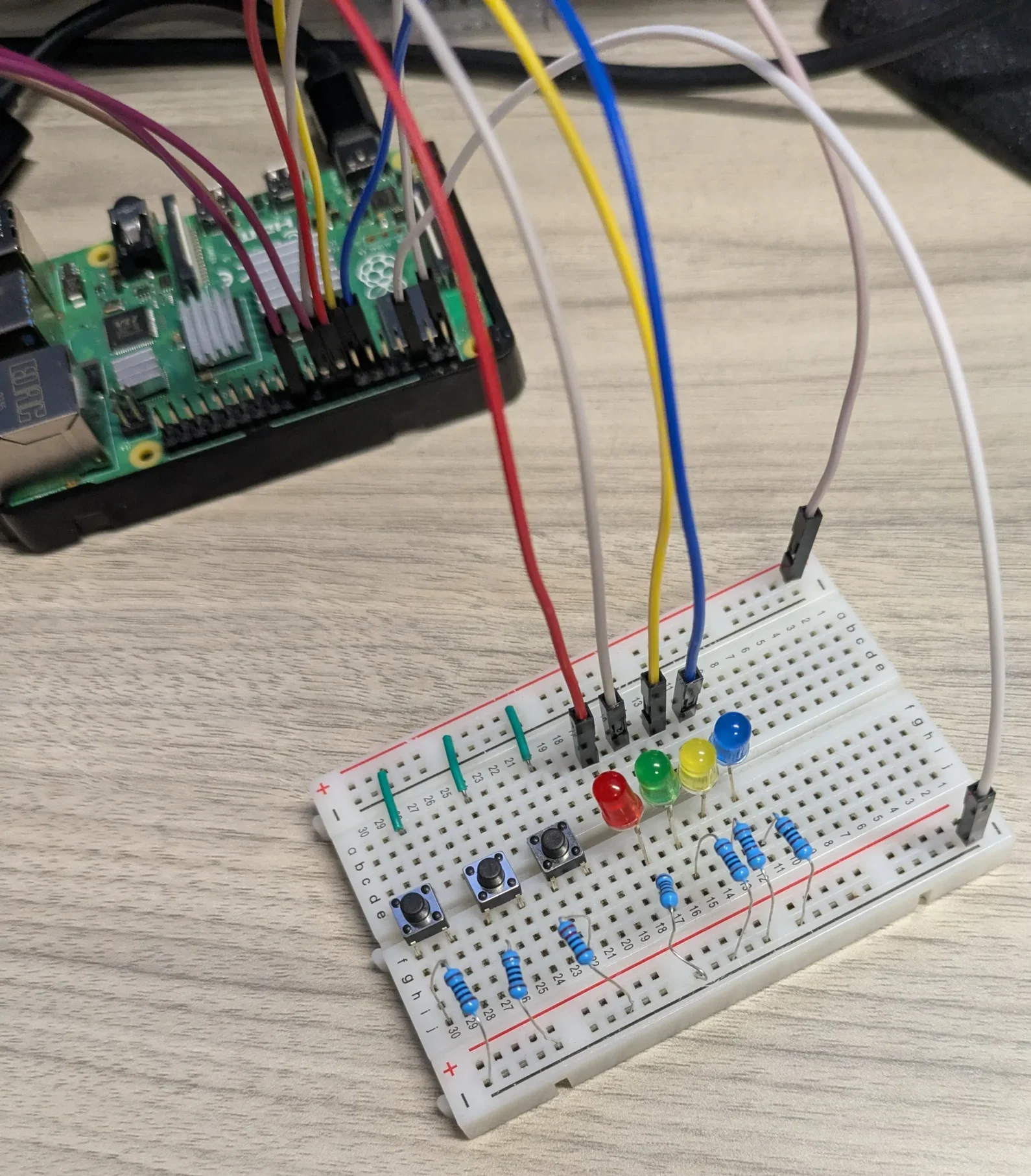 Now we’ll wire the GPIO to our physical switches and LEDs